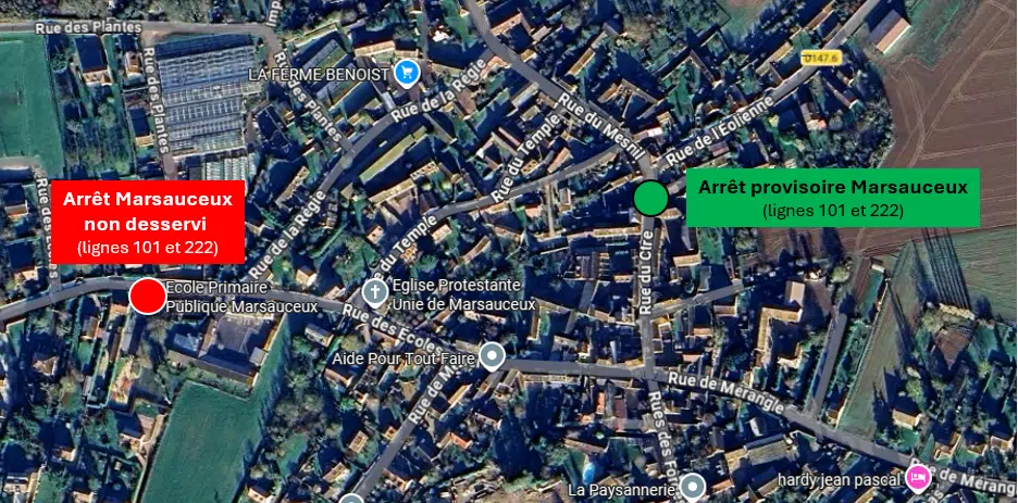 Les arrêts Marsauceux et Abribus sont déplacés.